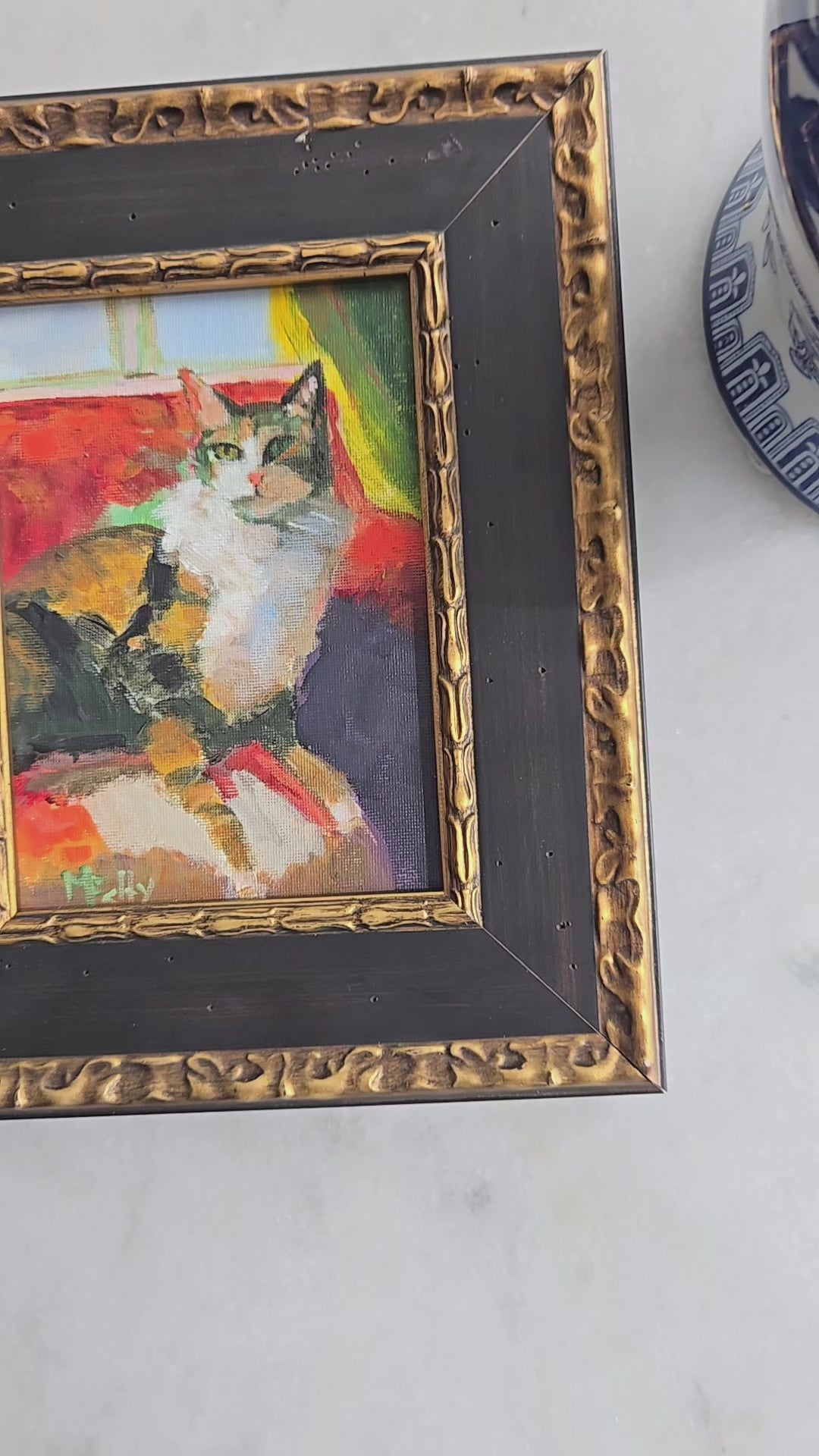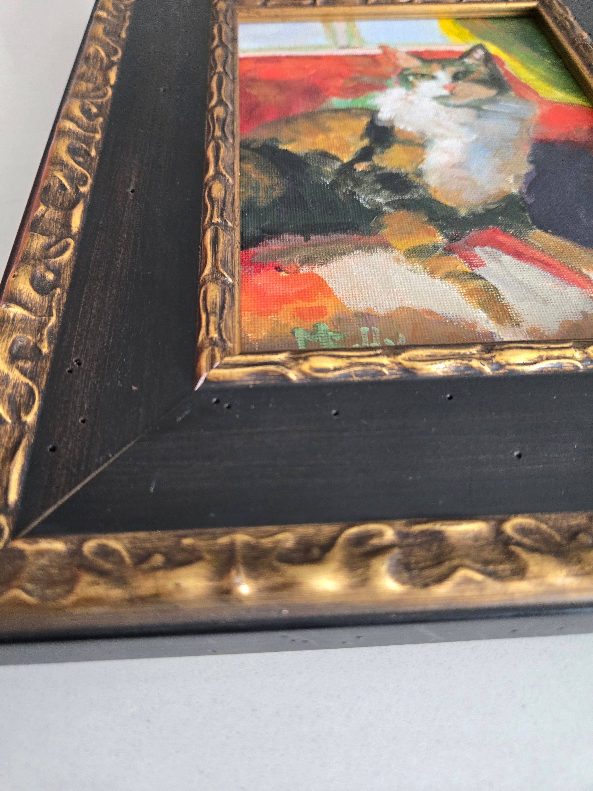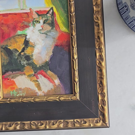 Beautiful and Charming Painting of Cat Lounging on Sofa, Capturing the Essence of Feline Grace and Loyalty. Perfect for Cat Lovers and Art Enthusiasts alike. This piece adds a touch of whimsy and elegance to any space. Whether for your living room bedroom or office this painting is sure to bring warmth and joy to your decor.